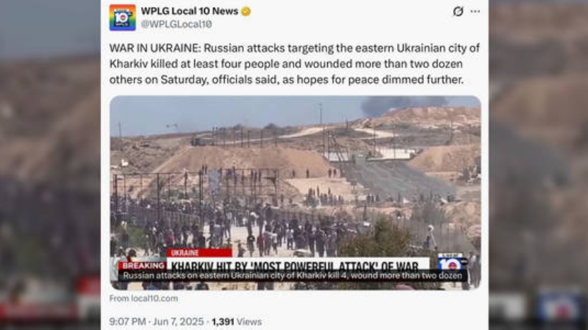 Una afiliada de la emisora estadounidense ABC transmitió imágenes del caos en Gaza para informar sobre un supuesto ataque ruso a la ciudad ucraniana de Kharkov.