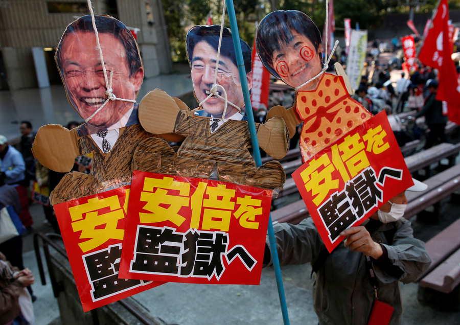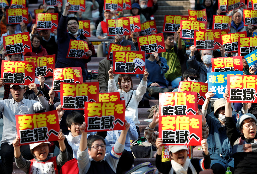 La manifestación se produce en medio de reclamos de que Abe participó en la venta de tierras estatales con un gran descuento para un operador nacionalista de escuelas que tiene vínculos con su esposa. La acusación y los intentos de encubrimiento han desencadenado un escándalo de amiguismo.
