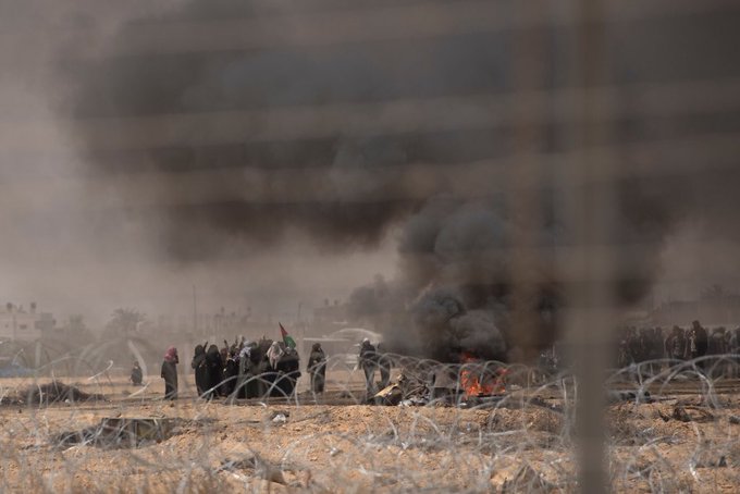 Alrededor de 35,000 manifestantes se reunieron en la valla fronteriza y miles más a menos de un kilómetro de la vecindad, de acuerdo con las Israeli Defence Forces (IDF).